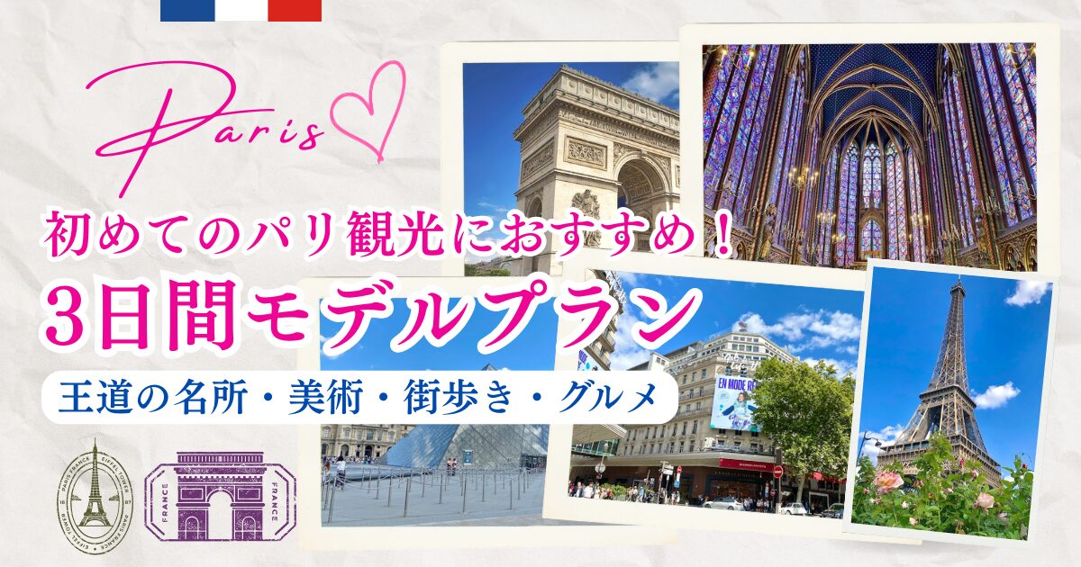 そこで本記事では、限られた時間で王道の名所・美術・街歩き・グルメをしっかり楽しめる初めてのパリ観光におすすめの3日間モデルプランをご紹介します!