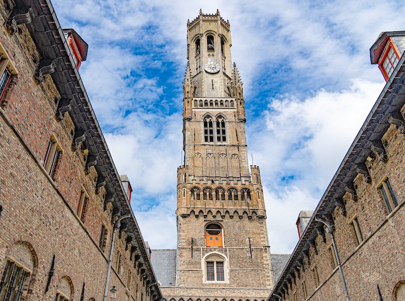 13世紀に建てられた高さ83mのブルージュの鐘楼は、聖母教会と聖サルヴァトール大聖堂の塔と並んでブルージュを代表する塔のひとつです。