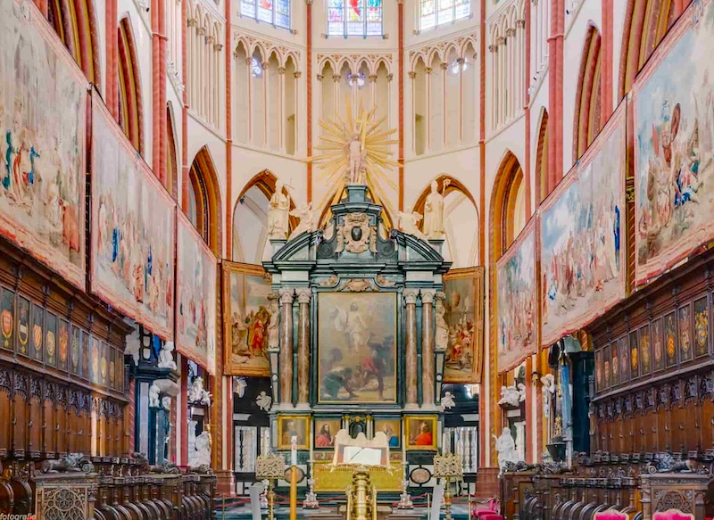 内陣には、宮廷画家ベルナルト・ファン・オルレイによって描かれたキリスト受難の壮大な三連祭壇画を見ることができます。