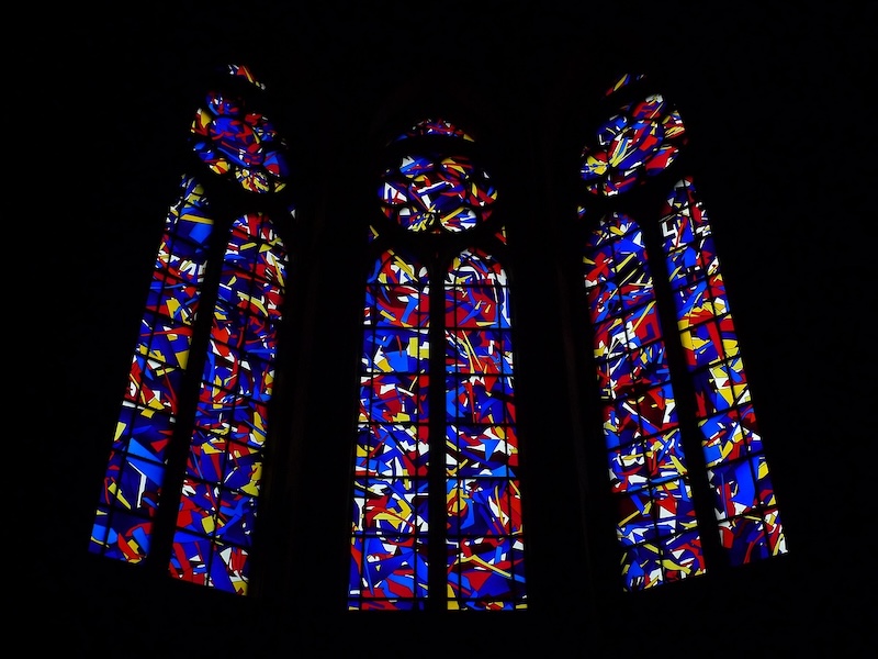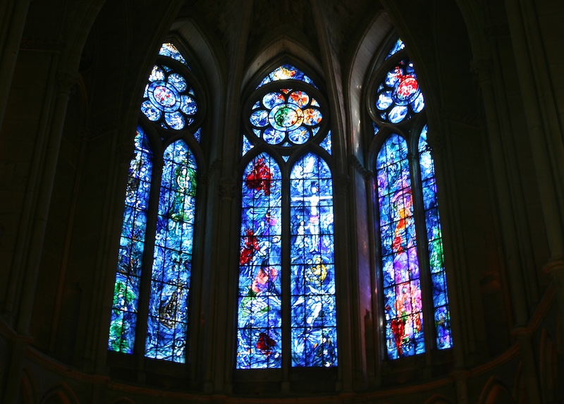 後陣のアクシアル礼拝堂には、「色彩の魔術師」と呼ばれたマルク・シャガールが制作した3枚のステンドグラスがあります。