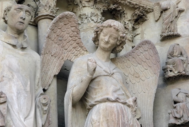 1236年から1245年の間に制作されたもので、ランスのノートルダム大聖堂ではこの天使像以外にも微笑む天使をたくさん見ることができます。