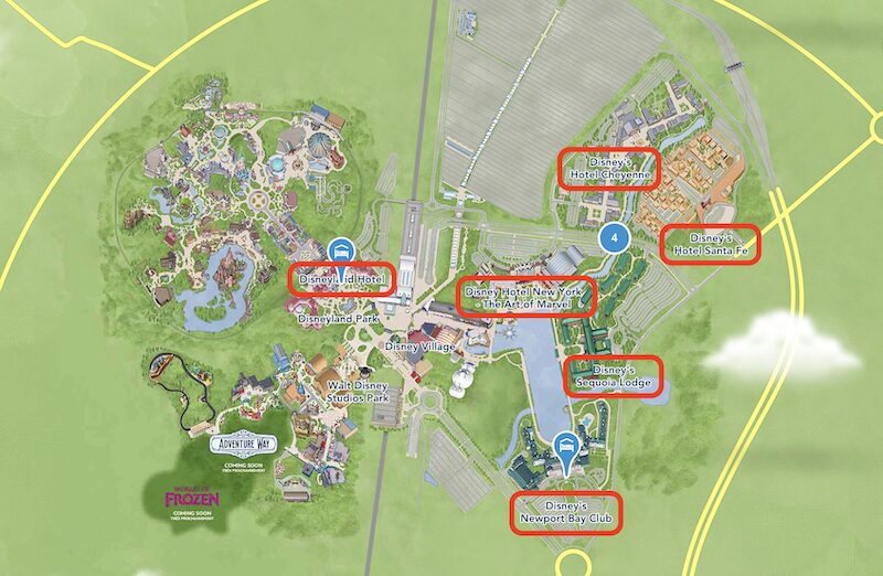 どのホテルもディズニーランド・パークまで無料シャトルバスの送迎サービスがあります。