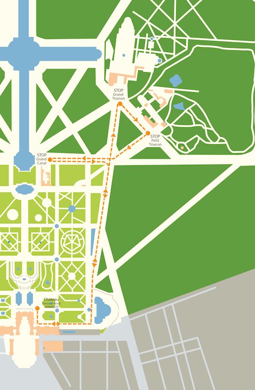 プチ・トランは宮殿前から出発し、プチ・トリアノン→グラン・トリアノン→グラン・カナル(大運河)の順に停車し、宮殿へ戻ります。