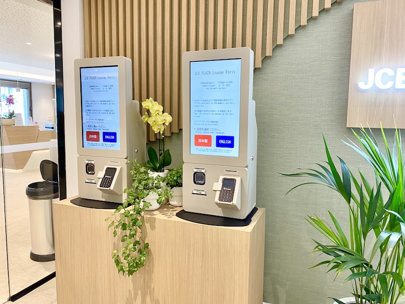 JCB プラザ ラウンジ・パリの入り口にある受付端末にJCBカードをかざしてください。