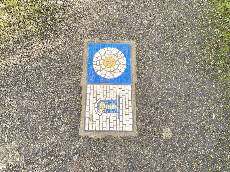 ピカシェットの家から道路にモザイクの案内があるので、それに従って歩いていきましょう。