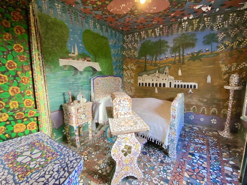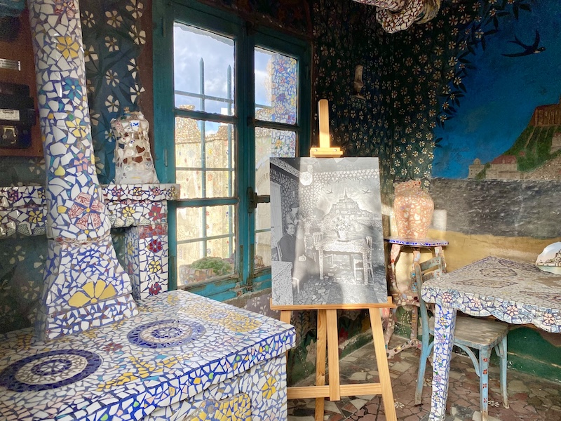 1938年、家の装飾を思い付いたレイモンは、ガラスや陶器の破片を集め、それらを使ってモザイクを作り、床や天井、壁など部屋の至る所にモザイクを敷き詰めました。