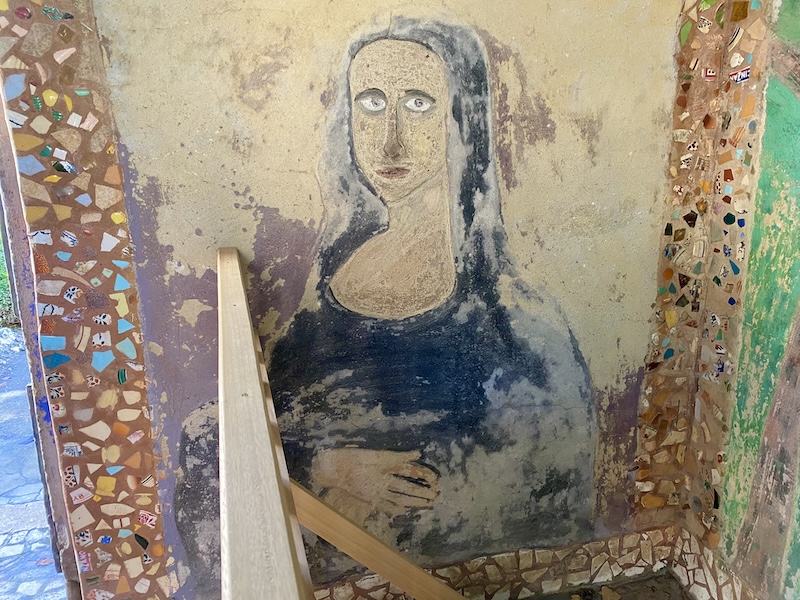 夏の家と庭をつなぐ壁画にはモナ・リザが描かれています。