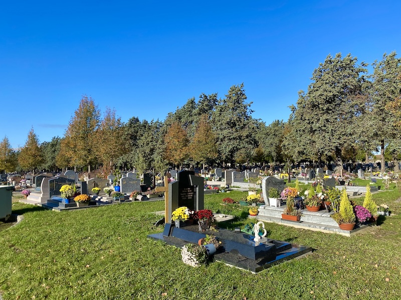明るく広々とした公園墓地で、ピカシェットの家から徒歩約5分の場所にあります。