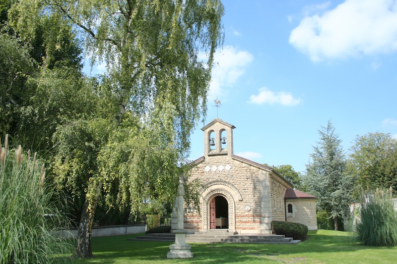 友人でG.H.マム社の社長であったルネ・ラルーにより敷地と資金が提供され、フジタはロマネスク様式の礼拝堂を建設しました。